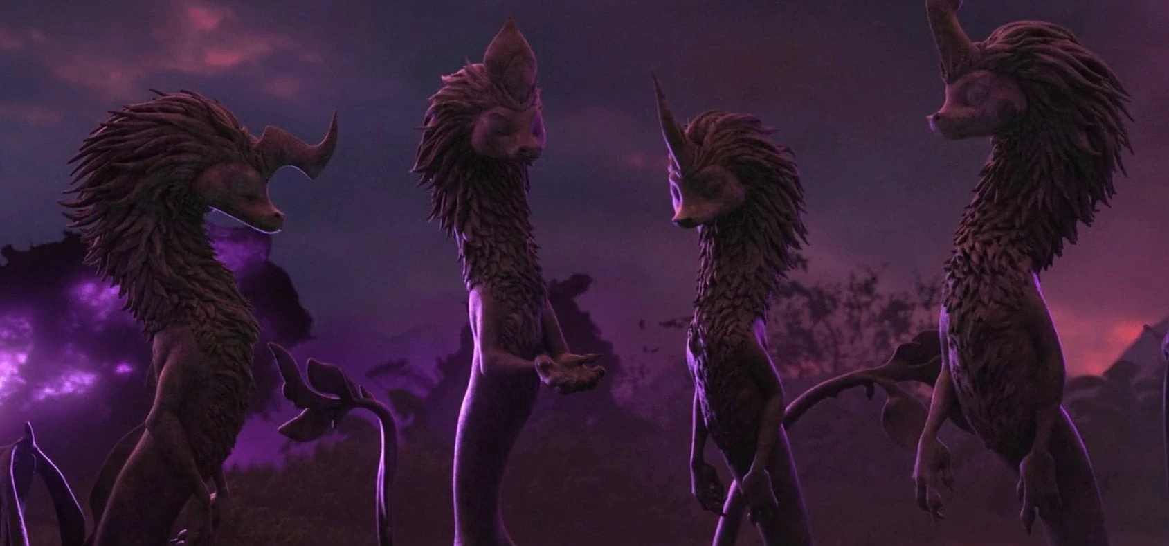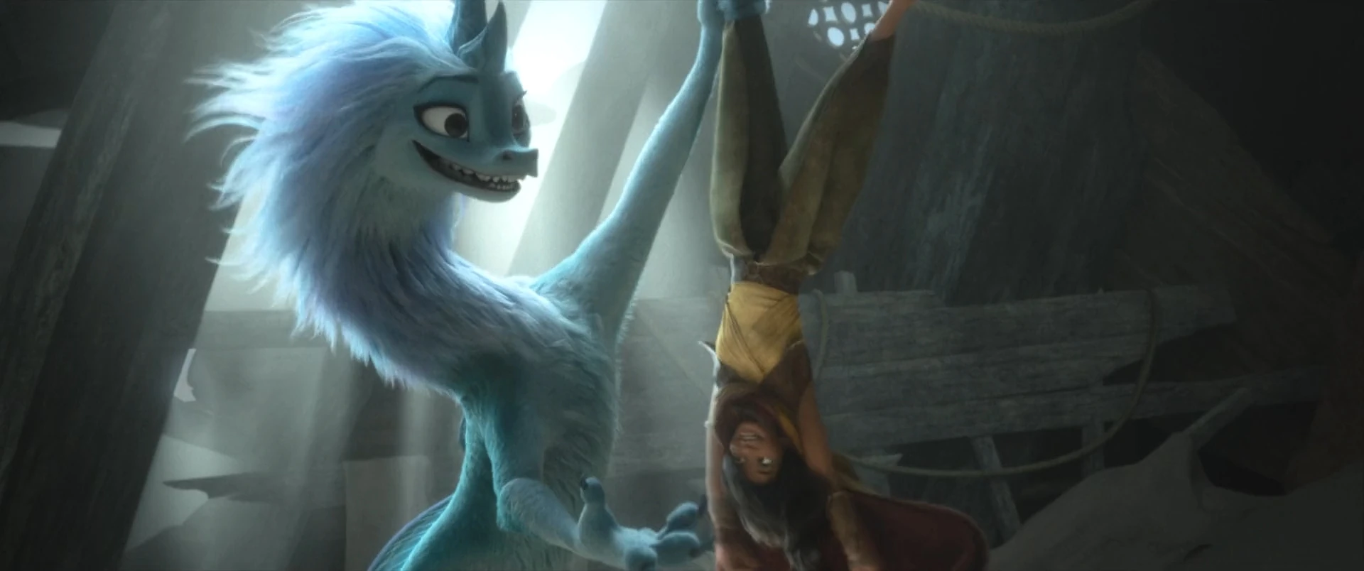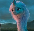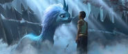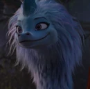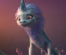 Fleeing during the skirmish between Raya and Namaari, Sisu gives up on fleeing when she sees Raya lose the advantage against her rival and finally find herself on the ground. Refusing to drop her, Sisu regains her true form before attacking the Fang Army with her fog blast[4]. Rid of the minions, she approaches Namaari while grumbling on her but hardly she looks at her in the teary eyes of the princess Fang that she begins to calm down, apparently seeing something in her before running away with the gang, leaving Namaari in shock.[4]