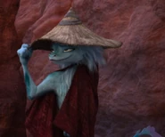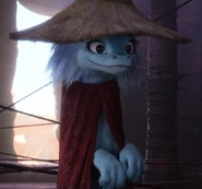 Landing on the shore, Raya decides to go find the local chief alone while Sisu stays on the boat. Sisu disagrees and starts over with her ideas of giving a gift as a sign of peace, just to fall on deaf ears. After Raya leaves, Sisu chooses to proceed with her idea and suggest by Boun, she takes several credit items as gifts. Unfortunately, traders start asking for money because they don't trust foreign people to keep their pledges. As the situation escalates, She is pulled out of trouble by an old woman. Sisu thanks her rescuer who takes her to see the chief who apparently lives outside the city but this turns out to be an ambush, the old lady being in fact Talon's vicious new chief. Having the choice between giving the information on the fragments or being left to the Druun, Sisu is almost doomed until the sudden arrival of Raya who pulls her out of trouble, taking the fragment in the same time and the two quickly return to the boat. Recovering from the event, Sisu found it hard to believe how bad the old woman was before she befriended the baby pickpocket and the Ongis that Raya recently recruited, having her cheek pulled.